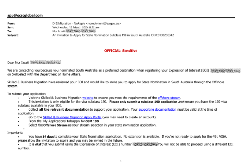 Izzati's Subclass 190 Southern Australia Success Story