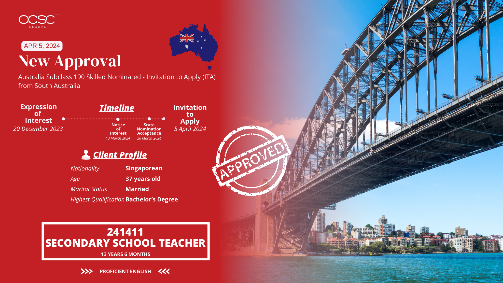 Izzati’s journey began with a desire for change and a better future. As a seasoned Secondary School Teacher with over 13 years of experience, she turned to OCSC Global for assistance, knowing that our expertise could make her dream a reality.
