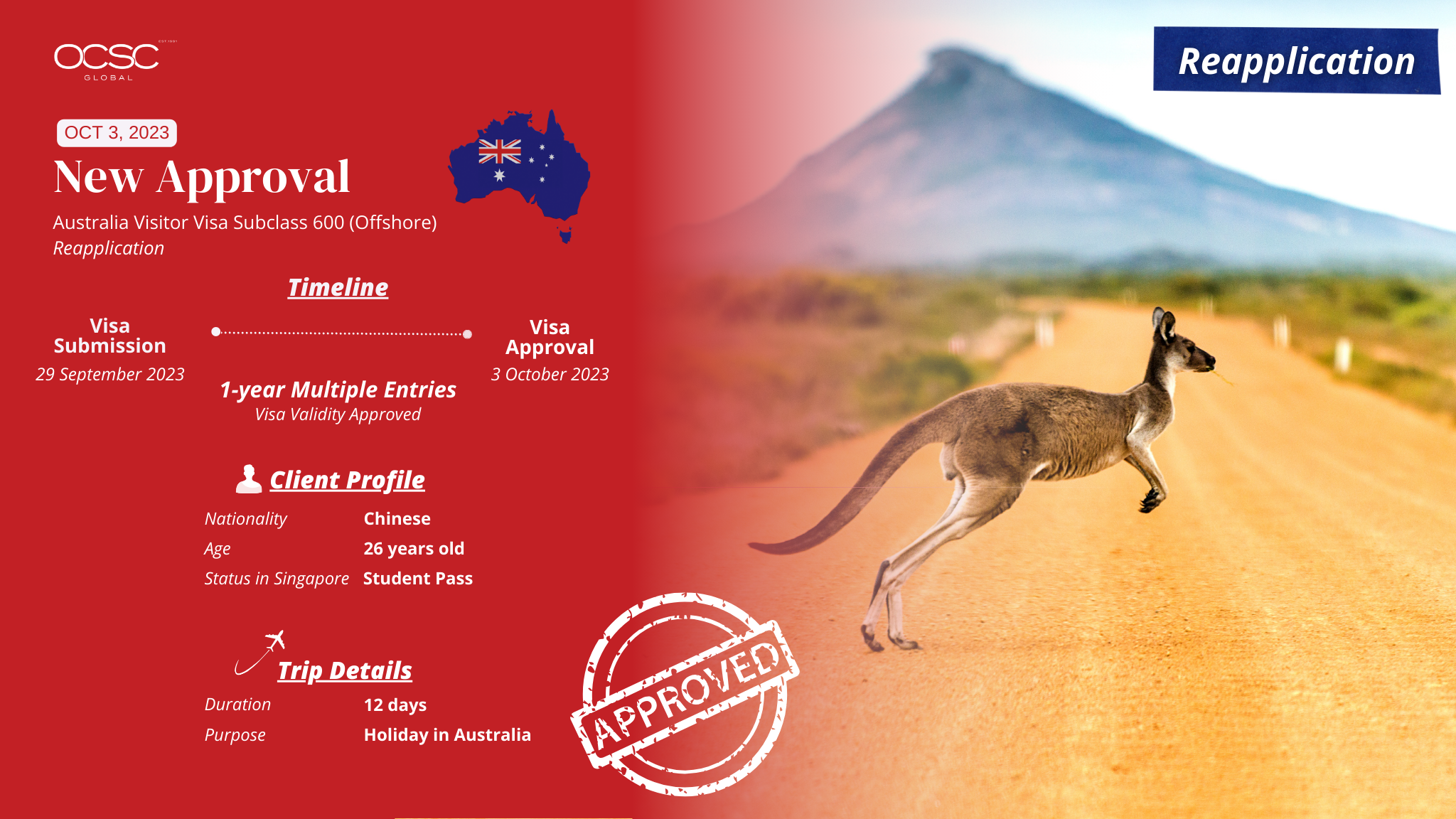 Australia Subclass 600 Visitor Visa | Ziwen | OCSC Global Success Story: Ziwen's Australia Subclass 600 Visitor Visa Approval